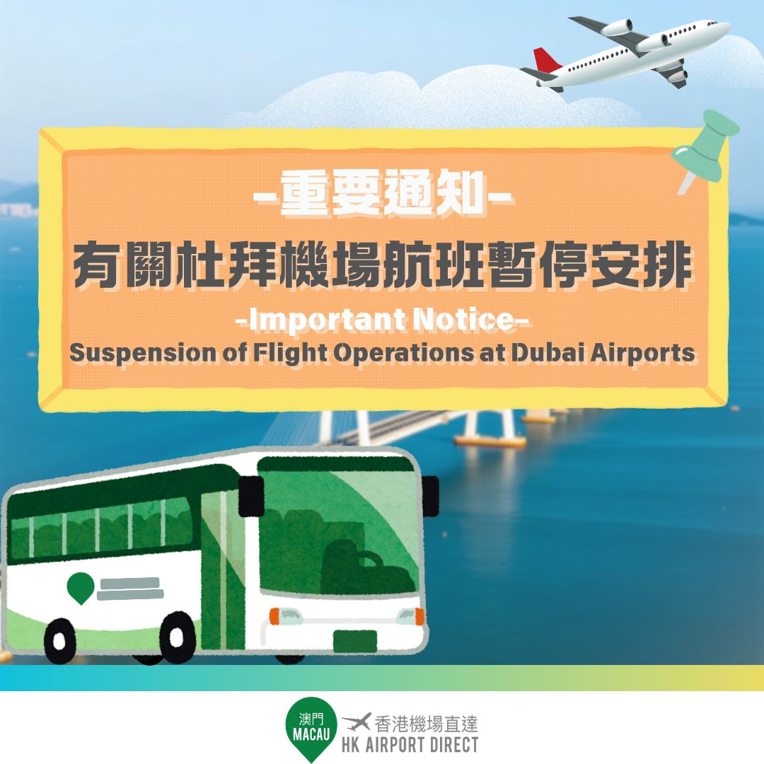 Due to the suspension of all flight operations at Dubai International Airport (DXB) and Dubai World Central – Al Maktoum International Airport (DWC) until further notice:Passengers who are scheduled to take our bus service to the airport or to